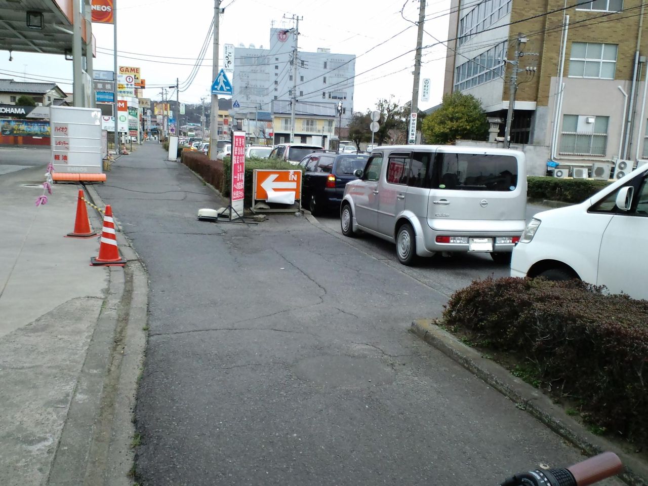 茨城県某所で、ガソリンの給油待ち車列です。