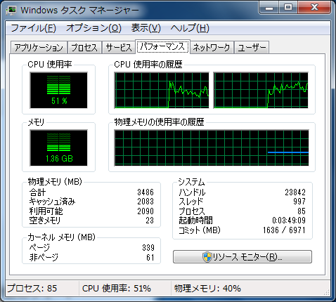 タスクマネージャーで確認すると・・・