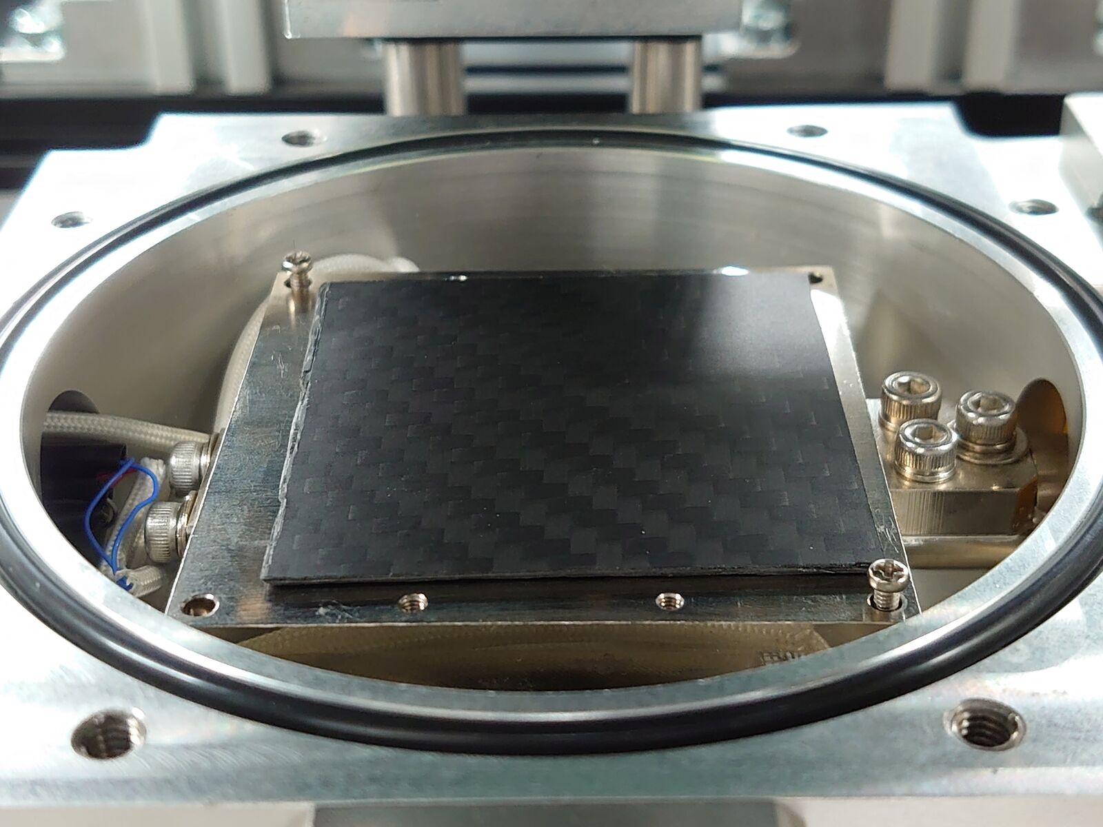 サーモウェーブアナライザは100mm角の試料まで設置できますが、今回は50mm角にカットして測定しました。因みに本装置では、決まった形にカットする必要はなくΦ10mm以上のサイズがあれば測定が可能です。また、今回測定したCFRPの厚みは1mmです。